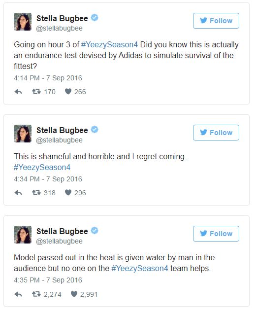 Prior to 4:40, the Yzy Szn 4 extras stood…in that 88 degree weather….some collapsing into a faint from dehydration.