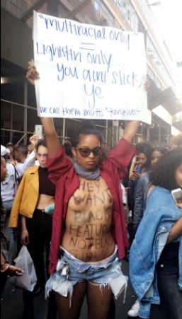 Model rioter in line for the casting wrote “they want black features, not black girls.” over her bare torso.